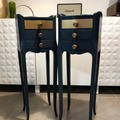 Superbe paire de chevets rénovés à la main avec soin. À l'origine en marqueterie, leur état initial ne permettait pas de récupérer le bois, mais une seconde vie leur a été donnée grâce à une restauration complète et soignée.
