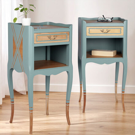 Aujourd’hui, ces tables de chevet vert affichent fièrement leurs courbes Louis XV et leurs nuances délicates.