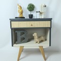 Élégance du gris « parisien », du blanc « paper » et du bois brut pour ce meuble d’appoint des années 60 !