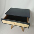 Un important travail de revalorisation a permis de remettre à l’honneur le bois brut de ses pieds compas ainsi que l’ensemble du design de ce meuble. La façade du tiroir s’est parée d’un cannage paillé qui accentue son allure chic.